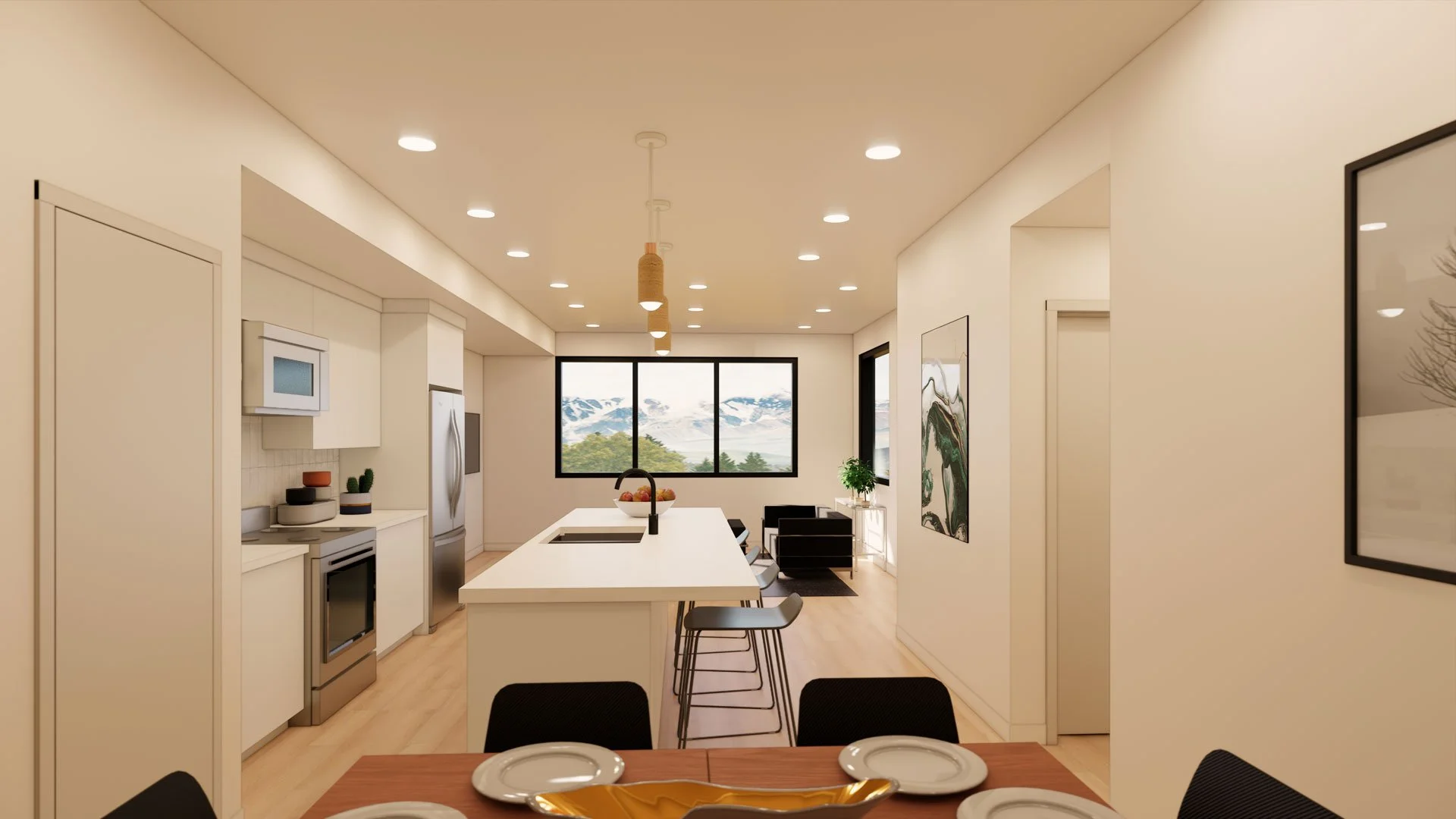 Featuring a sophisticated mix of brick and white facades, expansive windows, and private balconies for breathtaking views.